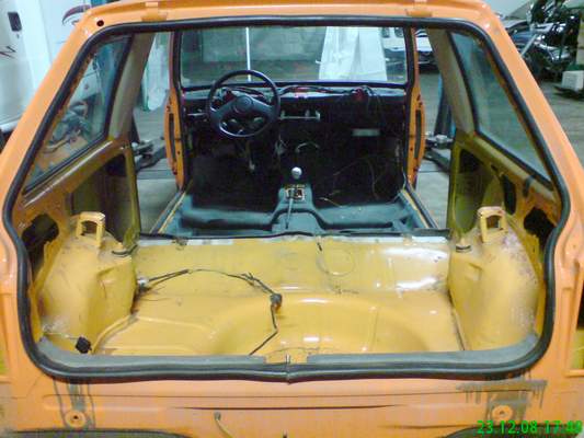 Es war fast keine Innenausstattung mehr drin, nur ein paar Winterreifen drauf und der Motor lief ja auch nicht.