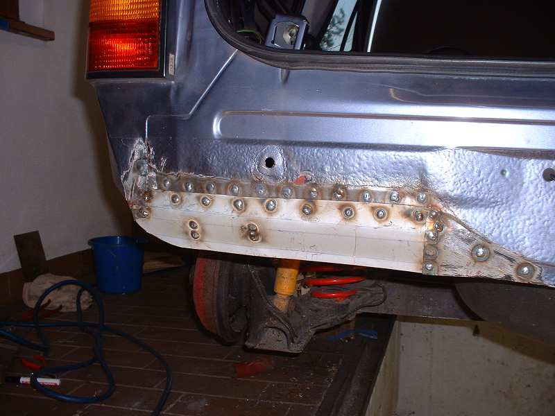 Die schönsten Schweißarbeiten hab ich mir ja zum Schluss aufgehoben. Gestern hab ich dem Längsträger hinten links endlich das aufbereitete Vorface-Spenderteil incl. Federteller (Danke Jens!