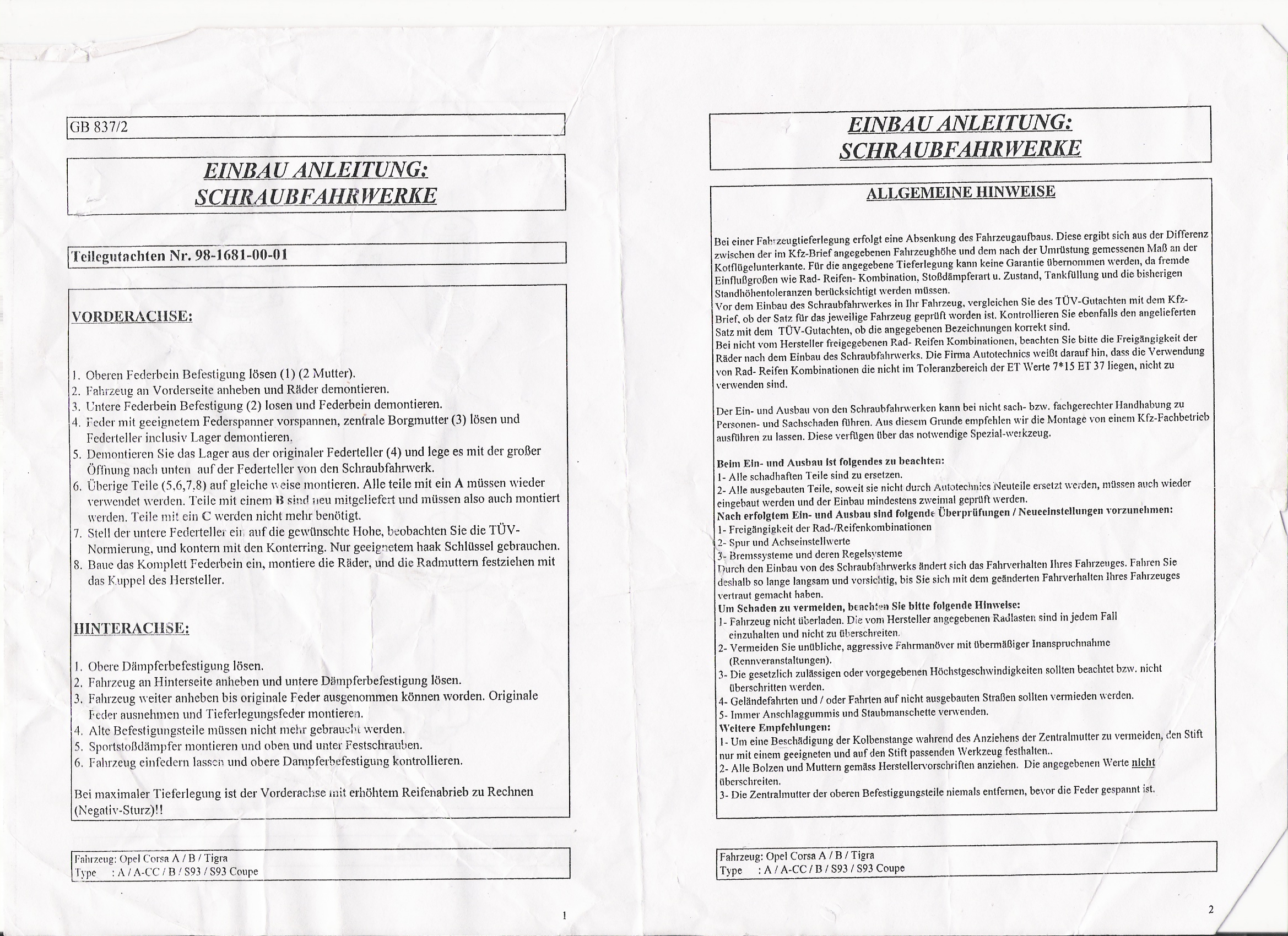 Du tauschst doch sozusagen nur den Stoßdämpfer und die federn aus. Der rest bleibt gleich. Das wirst du schon sehen, aber ne Einbauanleitung gibt es (Äußerst) sicher nicht.