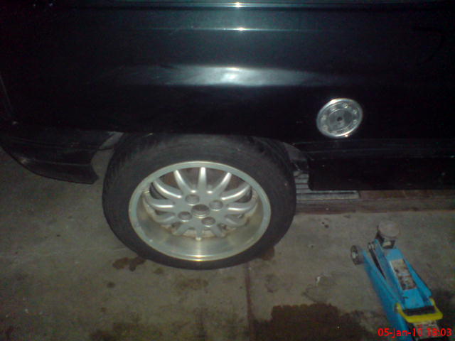 hier mal ein bild mit 7x15et25 mit 195/45, da sieht man ungefähr wie weit die rausstehen, und son 50er querschnitt is nochmal ne ecke grösser..... zumal das fahrwerk auf dem bild noch nicht wieder belastet ( bewegt) worden ist, hab mich nicht getraut damit aus der einfahrt zu fahren