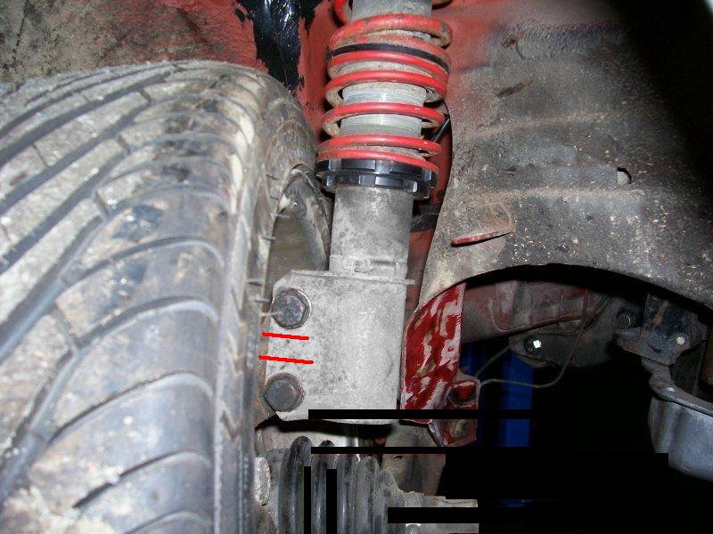 schnell gibts hier aber net ;-) hier mal ein bild da wo die beiden schrauben sind ist innen der achsschenkel und dadrüber die aufnahme der federn