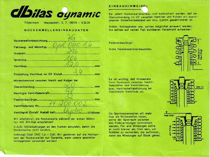 Zu jeder Nocke bekommt man so ein Datenblatt dazu: