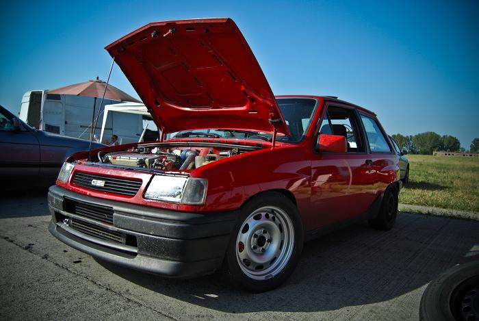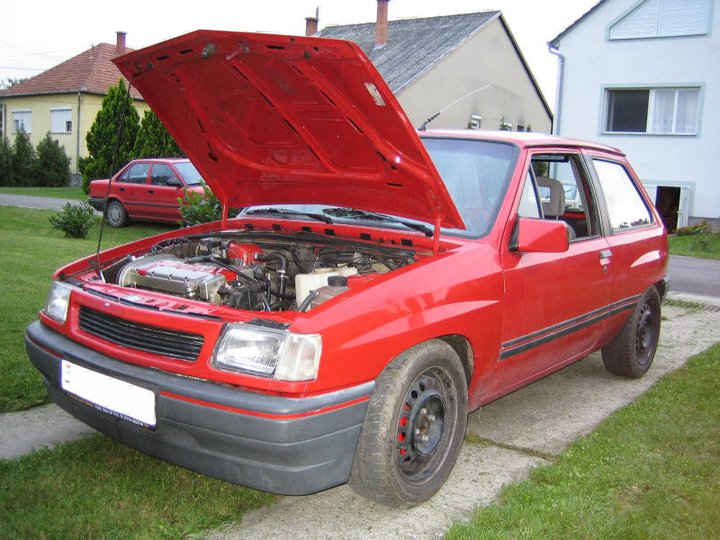 Ich fahre schon seit 5 Jahren A Corsa. Ich habe den ersten direkt nach dem kauf umgebaut. Es kam ein C20XE rein, Gewindefahrwerk, ein Bastuck Gruppe A Auspuffanlage und 256-er Bremsen. Mit der Zeit kamen dann auch Scheiben hinten, ein Kadett 16V BKV mit HBZ, und Antriebswellen von Sebi (Corsa-A-LET) rein.