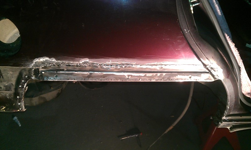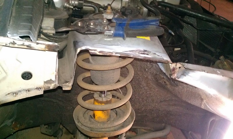 Radlauf auf der Beifahrerseite hab ich innen sowie außen ersetzt, und den Längsträger Fahrerseite repariert, und ein neues Batterieblech eingesetzt.