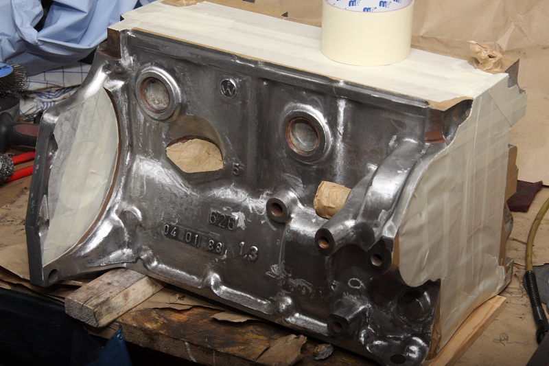 Was ich noch fertig gebracht hab, waren eben die Ansaugbrücke und den Krümmer anzupassen. Und noch den Motorblock abzuschleifen. Dann eben noch alles abkleben um fürs Lackieren startklar zu sein.
