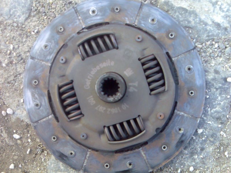 nun gehts los.als erstes kam das getriebe raus,um zu schauen,warum kein gang mehr rein geht.ich hatte schon einige kupplungsscheiben gesehen,aber noch keine,bei dem der belag auf einer seite komplett runter war.man konnte die federsegmente sehen.es kam die kupplung aus dem ersten spender rein.das getriebe liegt im regal.ist nur ein 4 gang,aber vielleicht bau ich es mal ein,um zu testen,wie sich die übersetzung macht.