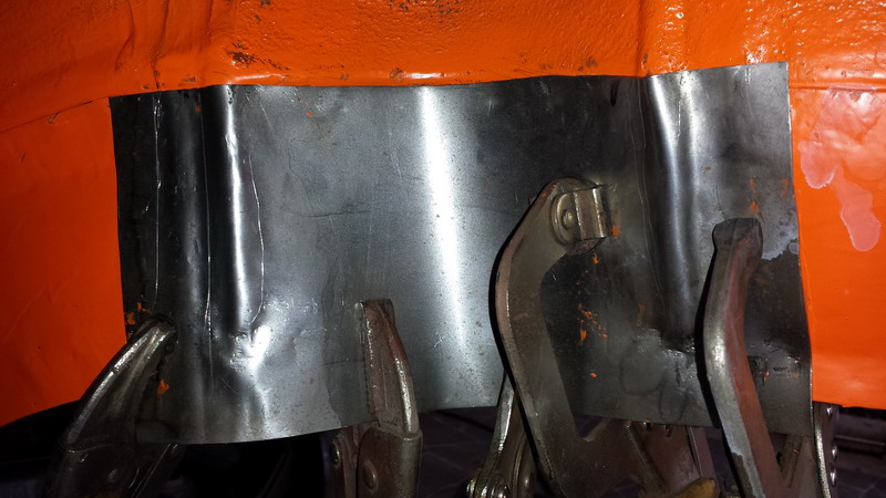 Wieso denn nicht auf der anderen Seite, da hast du doch ein normales glattes Blech eingeschweißt?