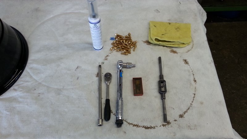 Zuerst alle gewinde im felgenstern nachschnieden. Bei mir war noch jede menge dreck vom strahlen drin und reste von der alten dichtmasse. Und wenn einem eine schraube im stern abreisst weil sie festfrisst oder so, dann ists vorbei!