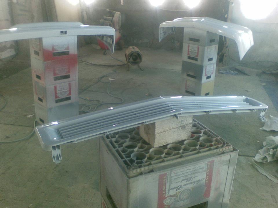 Stoßstangen sind mittlerweile lackiert. Jetzt noch ca.2 Wochen warten und dann werden die Ansätze und das Innenleben vom Grill geschwärzt