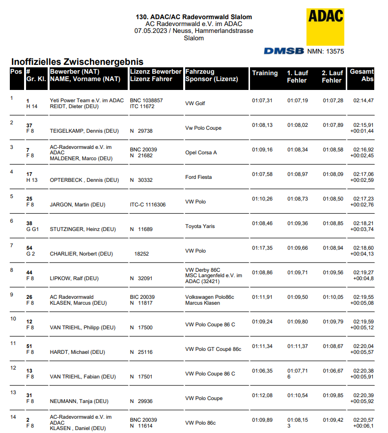 Am Ostersamstag war es wieder soweit - mein Start in die Saison 2023. Beim traditionellen langen Osterslalom in Neuss könnte ich den Wagen der ersten echten Funktionsprüfung unter Wettbewerbsbedingungen unterziehen... Der Wagen funktionierte wie nicht anders zu erwarten sehr zufriedenstellend. Das Problem war definitiv der Fahrer, der nicht so recht in die Gänge kam und etwas getrödelt hat...