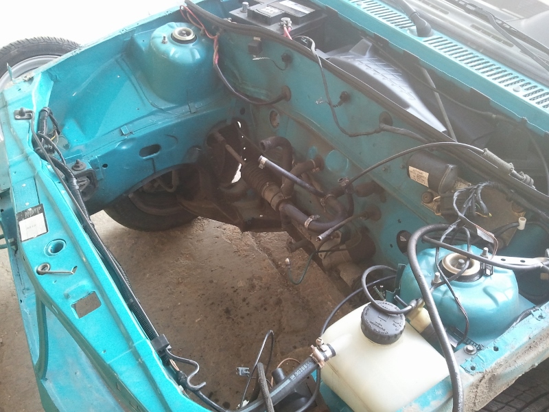 Das erklärt sich fast alles von selbst an dem Wagen. Antriebswellen müssen noch ab und Auspuff weg, dann kann der gute alte 1.2er von dannen ziehen. Hoffentlich geht das mit dem X14XE genauso unkompliziert. :roll: