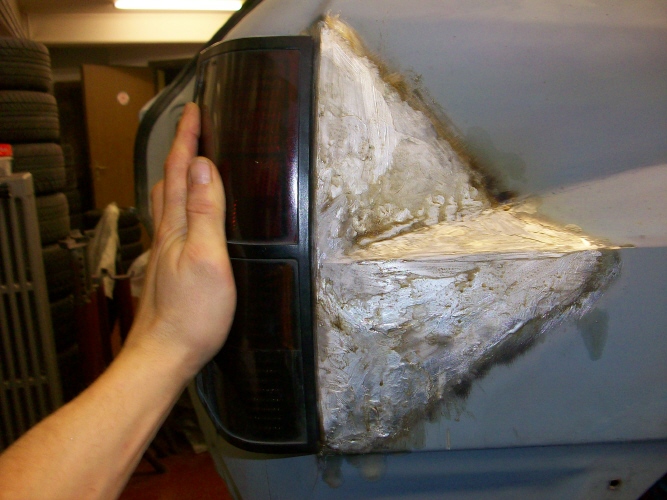 Also danach war klar jetzt muss die karosserie fertig werden weil ich ja nicht wollte dass die RTeile dann ewig beim Lackierer rumliegen und kein Auto dazu da ist, also hab ich gleich die Schlusslampen eingepasst(Verbreiterungsabschluss Verzinnt) und schon mal geschaut wie ich den Catchtank und Pumpe montieren will etc...