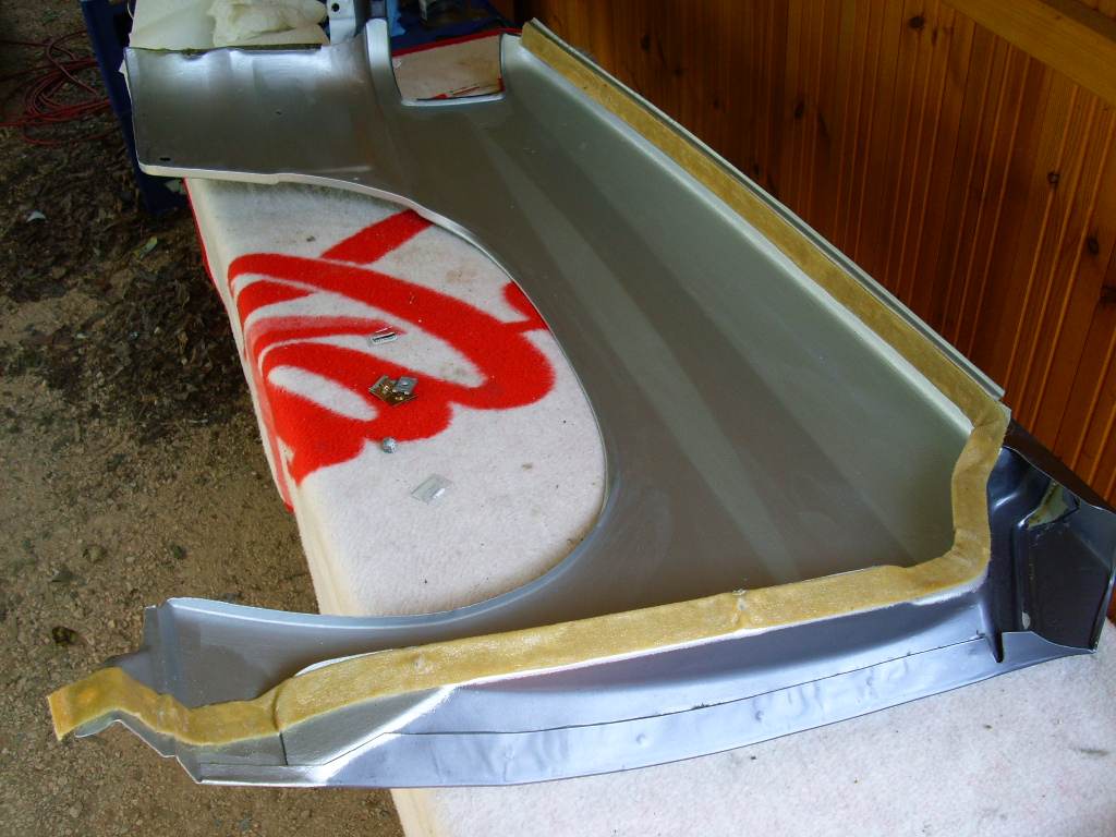 Nach langem Kampf mit den Kotflügeln sind die hier endlich montierfertig, Sanders Fettband solls dichten.