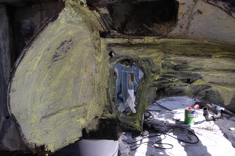 Momentan bin ich noch in den hinteren Radkästen zu Gange, erst dann wird dem Blech der Prozess gemacht. Und wie solls anders sein hab ich noch ein Loch gefunden...