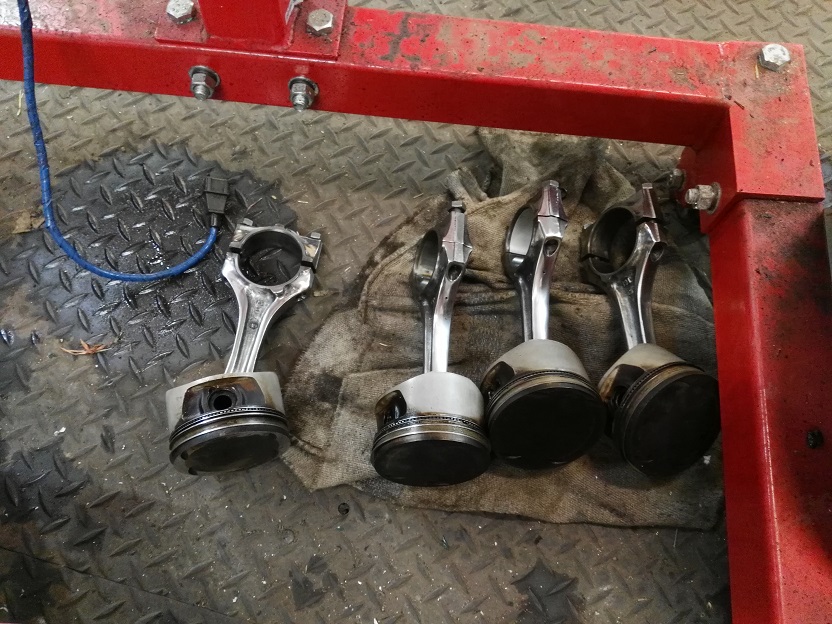 Kolben bleiben wie sie sind, da der Motor keinen Tropfen Öl verbraucht hatte und nach dem aufbohren auch nur 70.000 auf dem Buckel hat.