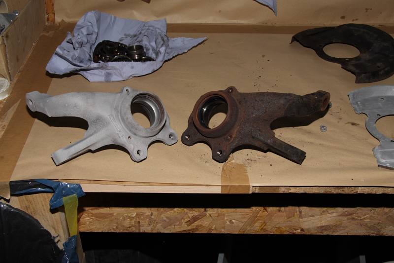 Heut Mittag hats mir nur gereicht die Achsschenkel zu strahlen und ne Schicht Zinkfarbe drauf zu schmieren, da ich nicht weiß, bis wann die neuen Lager da sind und ich die dann einpressen lassen kann.