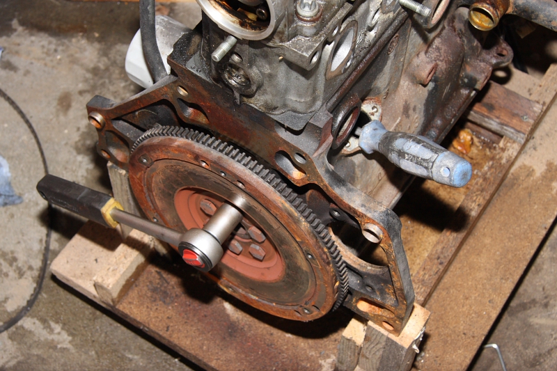 Das geht auch mit einer großen Nuss, einer Verlängerung und nem Hammer auch ganz gut.