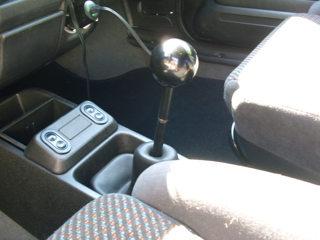 Ein Stück schwarz lackiertes Alurohr, das ich in Papa seiner Kellerwerkstatt gefunden habe verlängert meine Schaltstange vorbildlich. Ich glaube es war ein Stück von einem Walkingstock, passte perfekt. :lol: