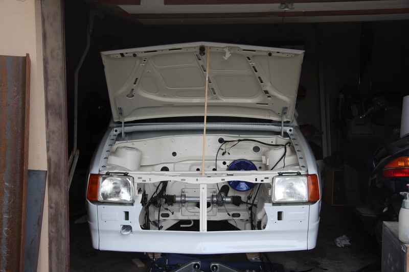 Optisch ist heut nicht viel passiert. Hab halt noch das Lenkgestänge entrostet neu gestrichen und dem Ganzen neue Sputstangenköpfe verpasst. Die Motor-Lager neu eingebaut und noch die Kotflügel und die Motorhaube richtige eingebaut. Ich sags Euch das Dichtband ist schon so ein nerviges Zeug... Nächstesmal nehm ich Karosserie-Dichtmasse oder sowas
