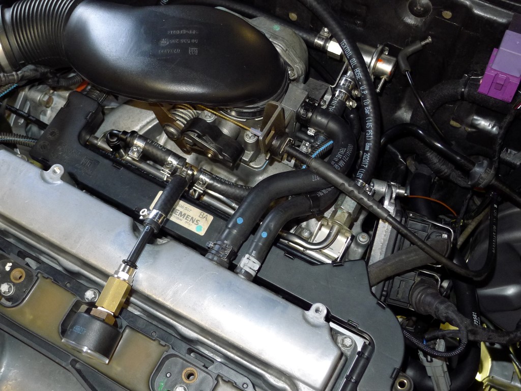 -Schläuche zur Einspritzleiste abgeklemmt um rein den Druckabfall in der Einspritzleiste zu messen.