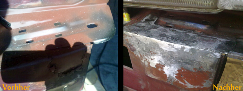 und zwar das schon vor wenigen Tagen kam vorne noch ein neues Blech in die Maske wurde dann verzinnt und anschließend wurde die erste schicht Brantho Korrux gestrichen.
