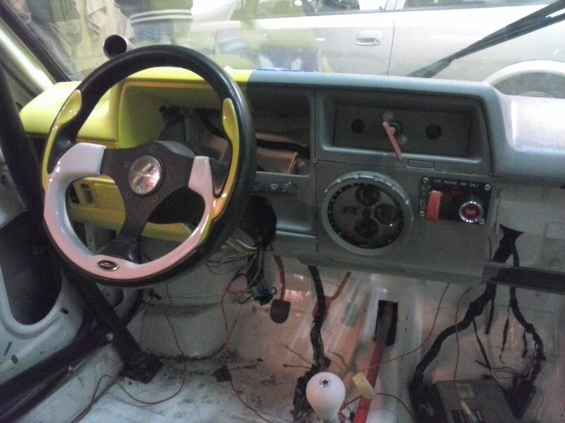 Dann gings seit April vorigen Jahres nach und nach vorran mit den ganzen umbauten. Nach vielen Problemen und dem letzten schweißen der neuen Frontmaske ..,.... ... und dem nochmaligen Überarbeiten des Lackkleides ...... ... steht er nun mit eingebautem Motor noch weit vom Ziel entfernt.