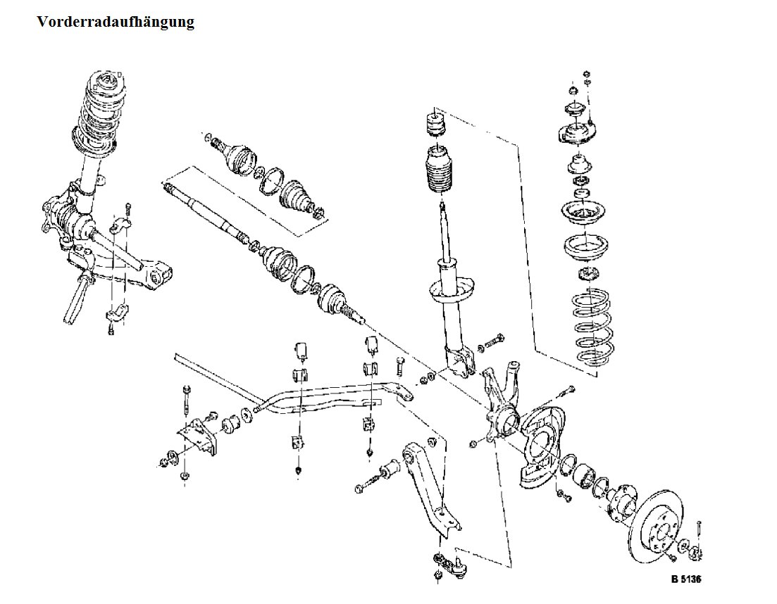 Hier mal ein Überblick über den Zusammenbau der Vorderachse mit den dazugehörigen Arbeitswerten