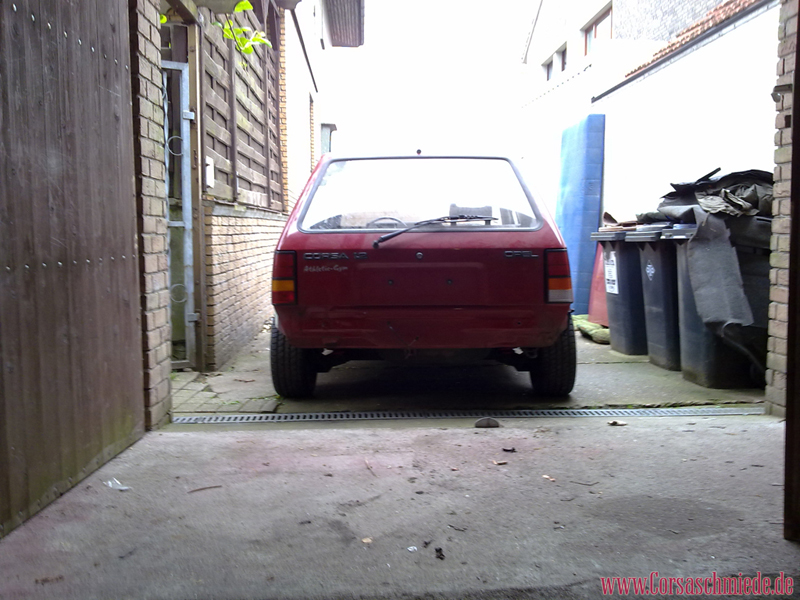 Durch eine kleine Hallenräumung (Wohnwagen musste raus und Auto stand davor) musste mein kleiner mal ne Runde bewegt werden... Hier seht ihr mal den aktuellen Stand der Dinge. Hinten sind jetzt schon die Felgen drauf, die bleiben werden. Sind die orig. Kadett-Sportstahl mit 175/50R13 und 25mm Spurplatten pro Seite.