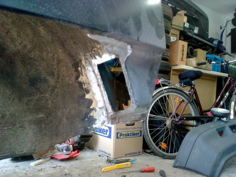 Autsch! Da haste ja noch was vor. Am besten gleich das ganze Heckblech wechseln. Bis Du da mit Flicken fertig wirst kannste in Rente gehen :wink: . Zumindest, wenns gut ausschauen soll^^.
