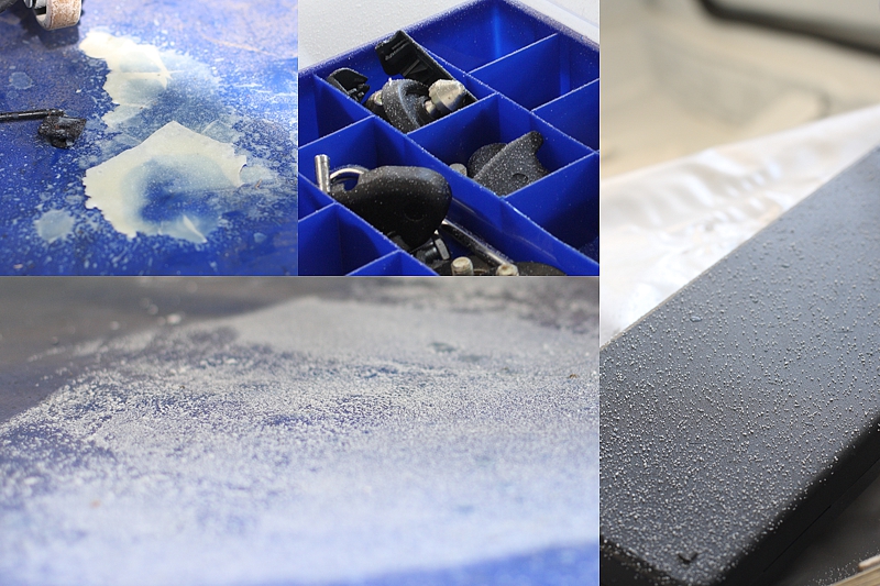 Die Probestücke zum Test der Kriechfähigkeit des Hohlraumwachses.<br />Ab 20°C fängt das Wachs zu kriechen an. So reicht ein schoner sonniger Tag, damits eventuell entstandenem Rost die Basis nimmt.