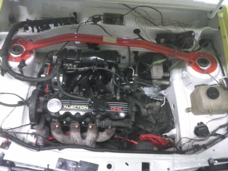 Dann gings seit April vorigen Jahres nach und nach vorran mit den ganzen umbauten. Nach vielen Problemen und dem letzten schweißen der neuen Frontmaske ..,.... ... und dem nochmaligen Überarbeiten des Lackkleides ...... ... steht er nun mit eingebautem Motor noch weit vom Ziel entfernt.