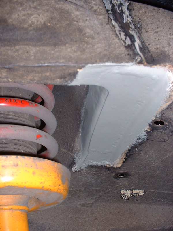 Die schönsten Schweißarbeiten hab ich mir ja zum Schluss aufgehoben. Gestern hab ich dem Längsträger hinten links endlich das aufbereitete Vorface-Spenderteil incl. Federteller (Danke Jens!