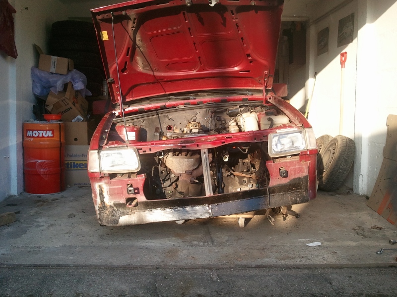 Heut hab ich meinen C12NZ reingehoben. Wohlgemerkt ohne Motorbrücke oder Bühne. Geht auch. Am Sommerwagen würde ich sowas aber nicht unbedingt machen. Hab die Karosse einfach soweit abgesenkt bis alles gepasst hat.