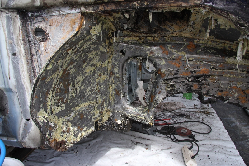 Momentan bin ich noch in den hinteren Radkästen zu Gange, erst dann wird dem Blech der Prozess gemacht. Und wie solls anders sein hab ich noch ein Loch gefunden...