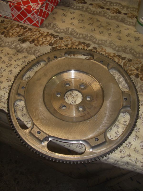 Wie zu sehen hatte das Schwungrad vor der Bearbeitung 7,3kg. Nach dem Erleichtern sind wir bei 3,6kg gelandet.