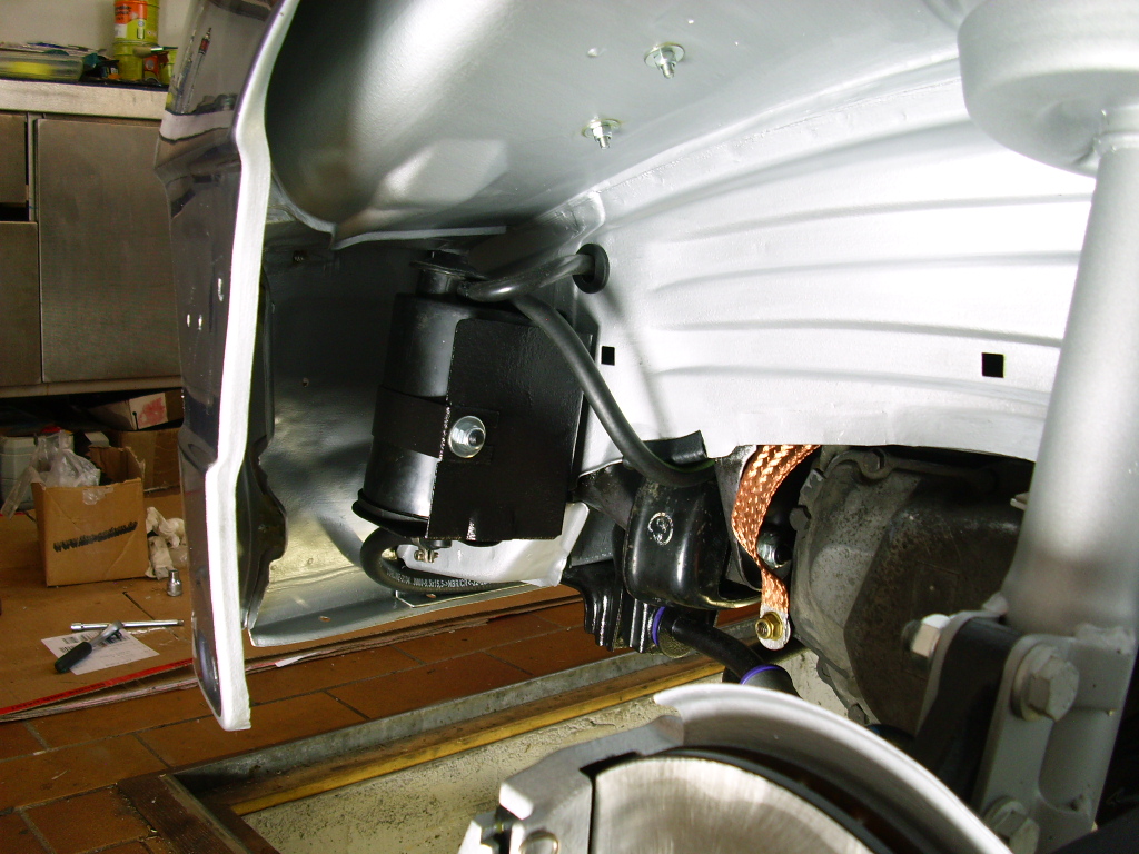 Kotflügel wieder dran. Schön TÜV-konform montierter Entlüftikus. Der Innenraum ist wieder fein, (fast) alles drin, alles dran.