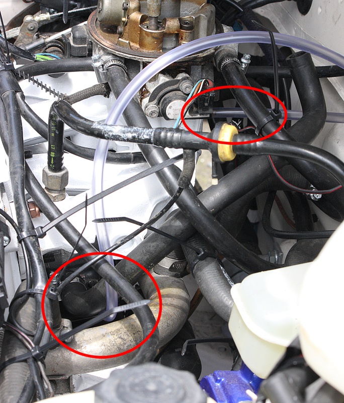 Die Vorwärmung geht von einem Blech über dem Krümmer an den Ansaugschnorchel vom Luftfilter.