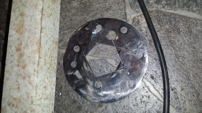 Verbesserungsvorschlag: Ich habe in das Blech vor dem Einschweißen ein 25mm Loch mit einem Stufenbohrer eingebracht,