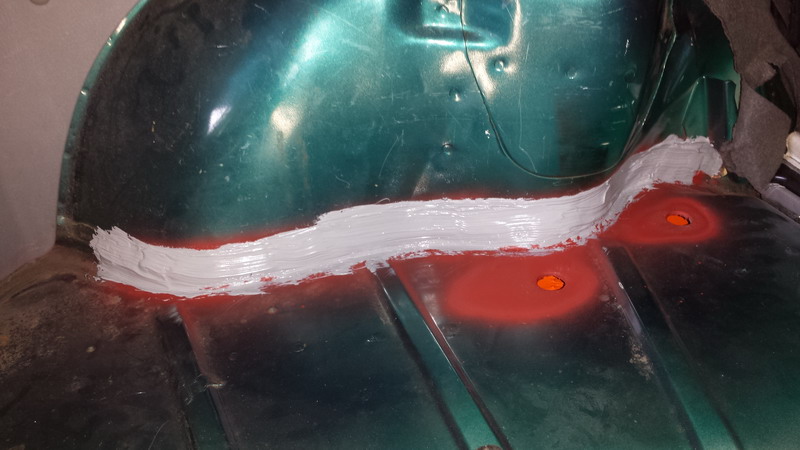 Jetzt alles mit Karroseriedichtmasse versiegeln.