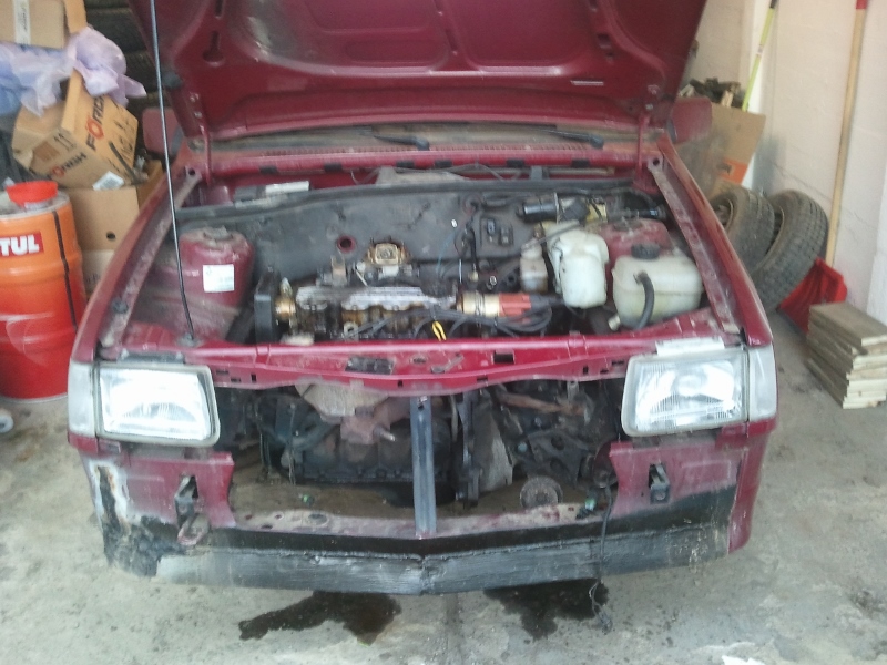 Heut hab ich meinen C12NZ reingehoben. Wohlgemerkt ohne Motorbrücke oder Bühne. Geht auch. Am Sommerwagen würde ich sowas aber nicht unbedingt machen. Hab die Karosse einfach soweit abgesenkt bis alles gepasst hat.